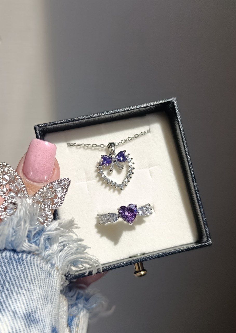 ست گردنبند و انگشتر قلب پاپیونی صورتی همراه باکس گل جاودان صورتی۴۹۸٬۰۰۰ 6%