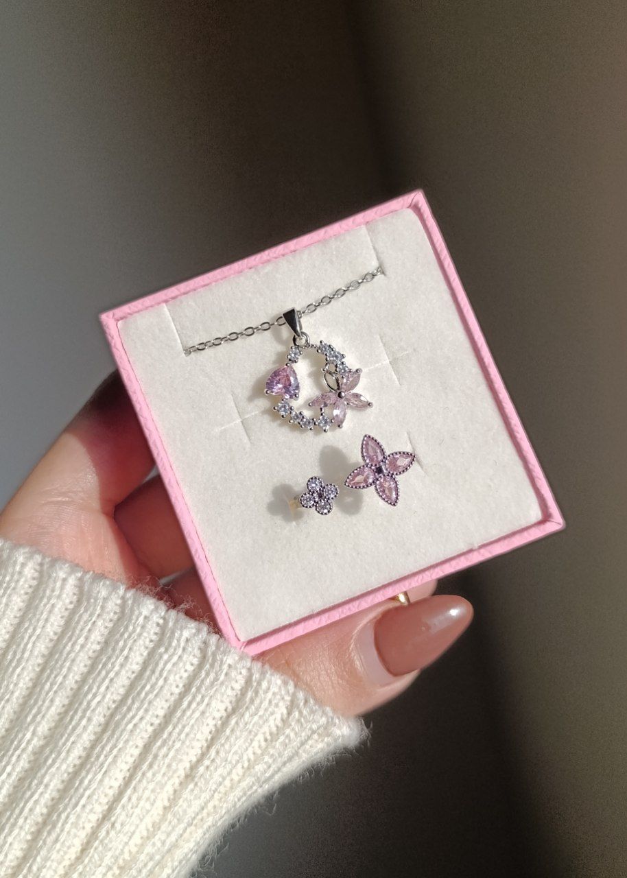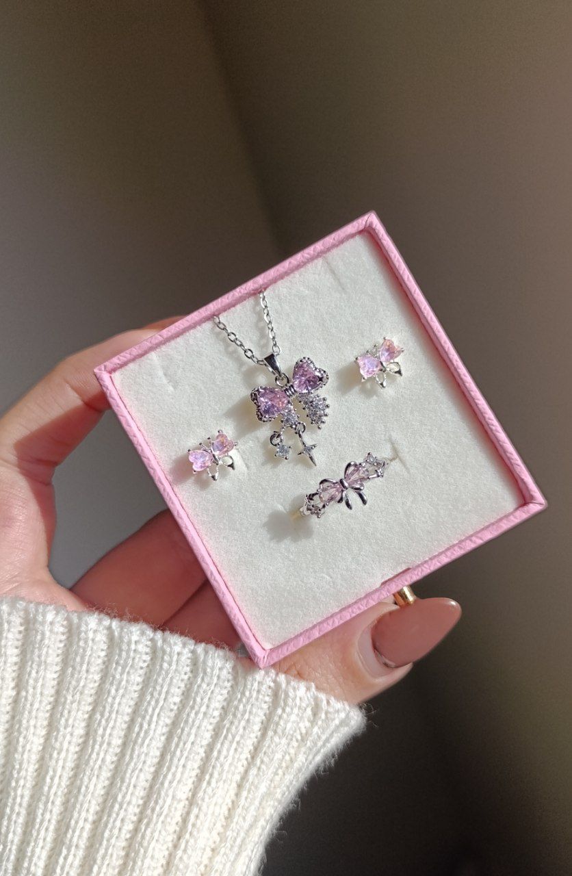 ست گردنبند انگشتر و گوشواره پاپیونی صورتی با باکس گل جاودان صورتی۴۹۸٬۰۰۰ 7%