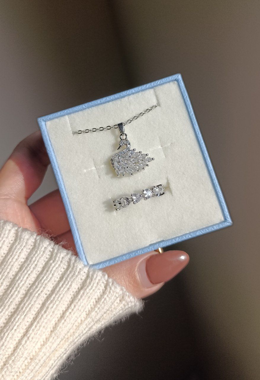 ست گردنبند قو سفید و انگشتر تنیسی سفید همراه باکس گل جاودان آبی۴۹۸٬۰۰۰ 6%