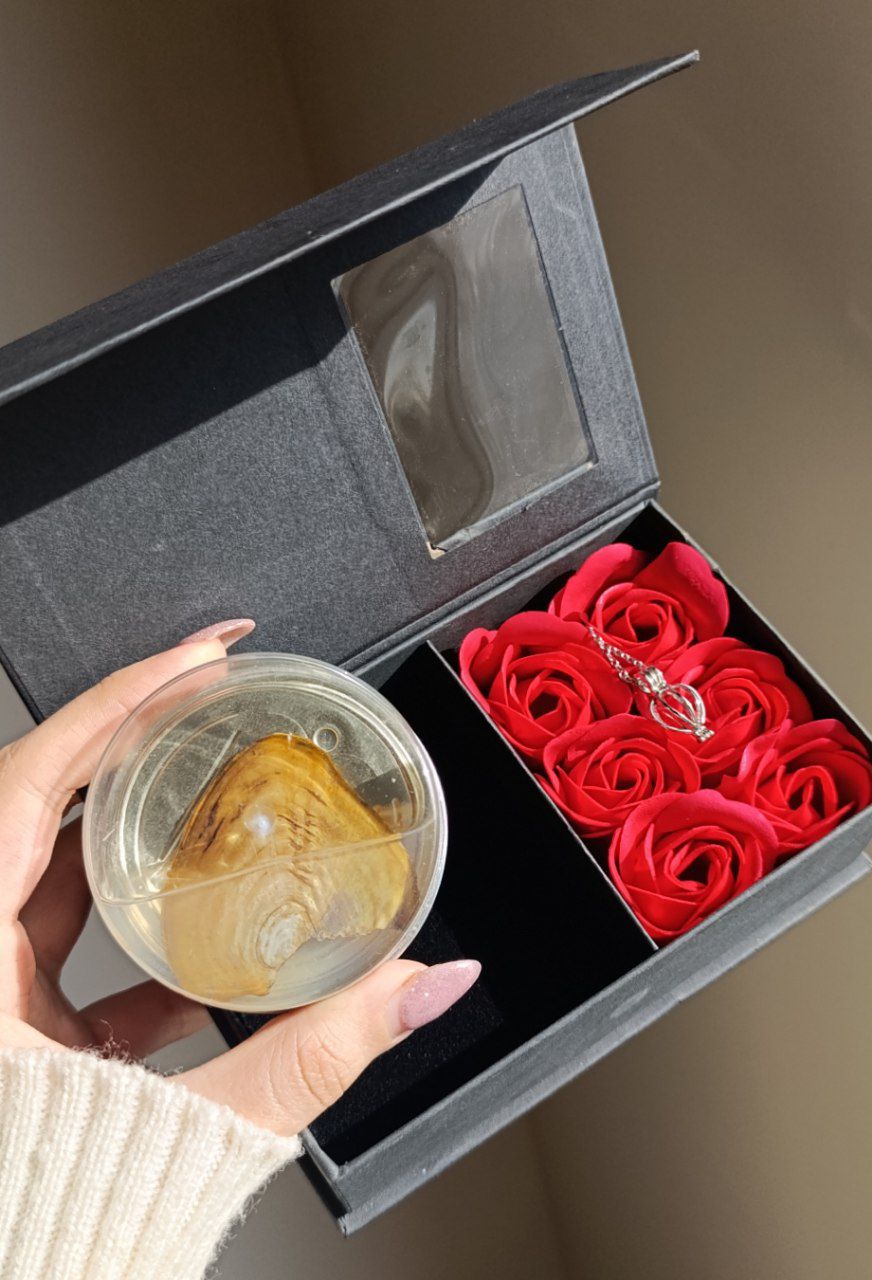 باکس گل و گردنبند مروارید عشق