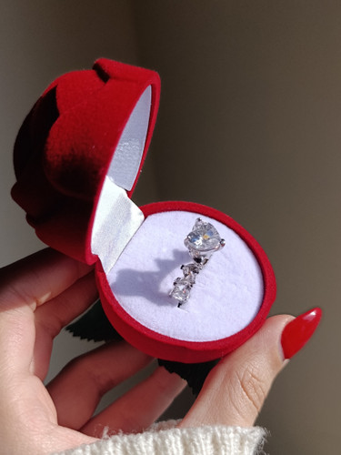 انگشتر نگین قلبی سفید همراه باکس گل قرمز