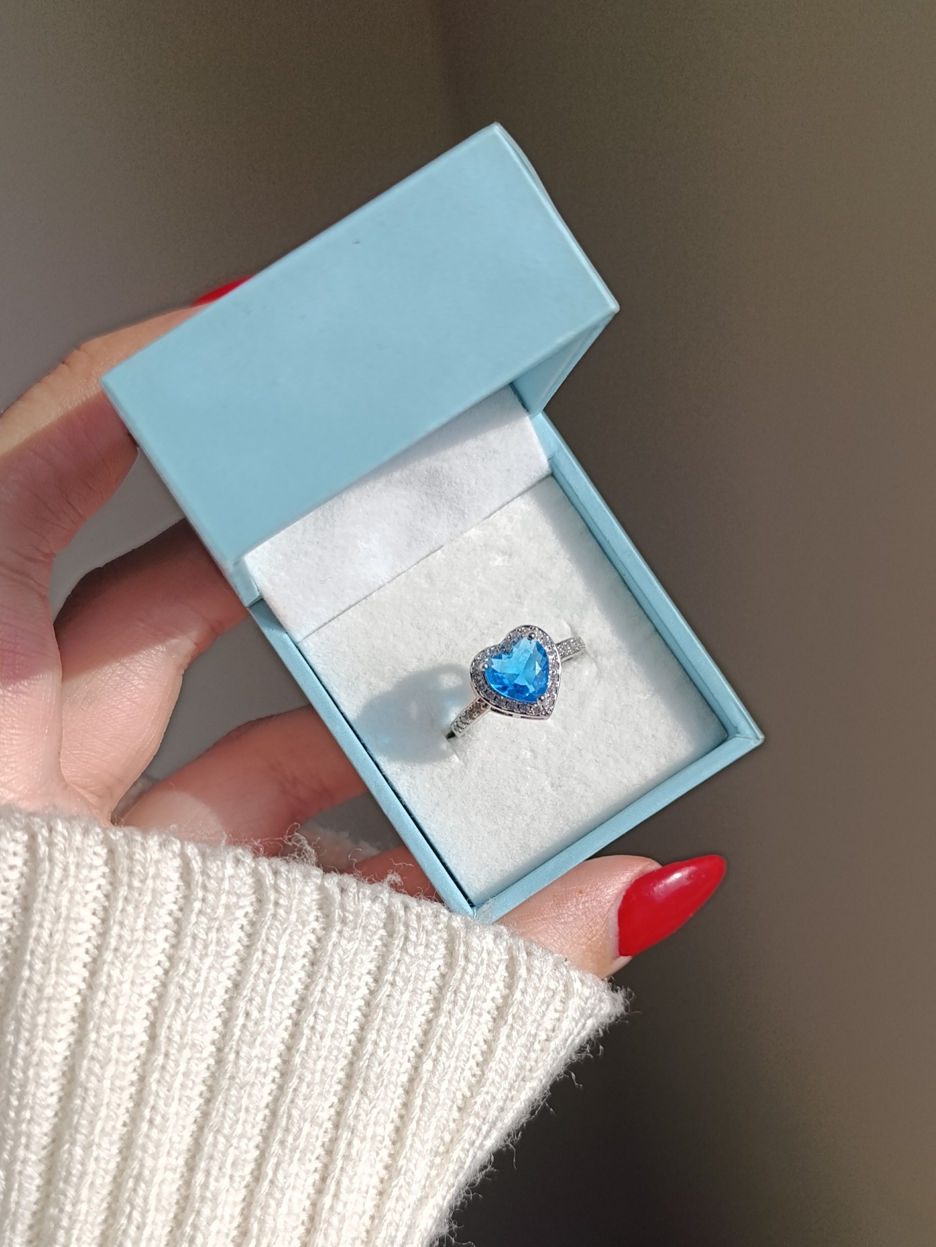 انگشتر نگین قلبی آبی همراه باکس انگشتر آبی