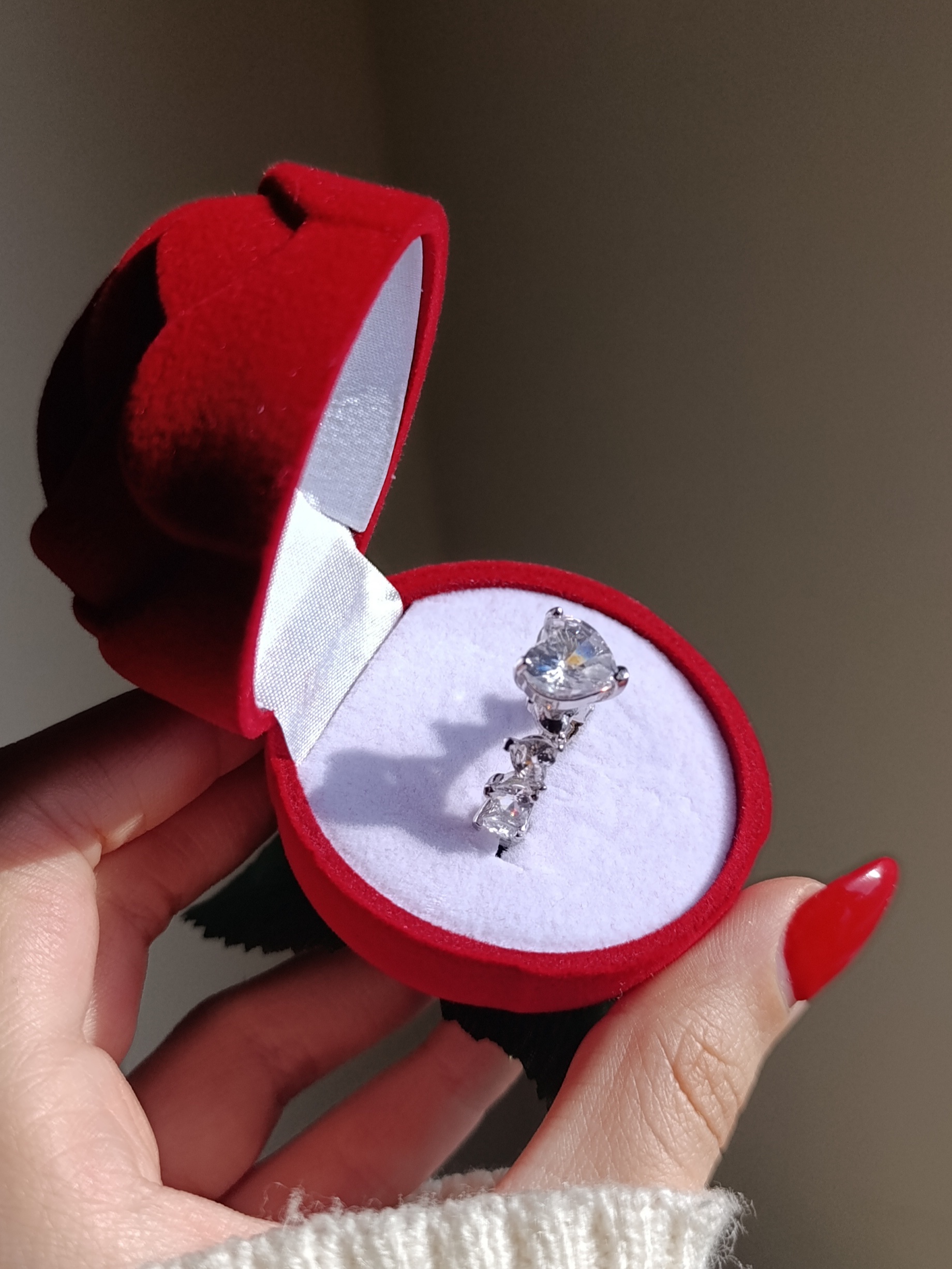 انگشتر نگین قلبی سفید همراه باکس گل قرمز