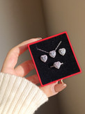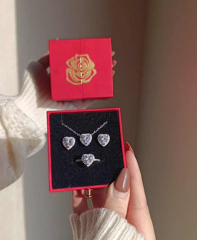 نیم ست قلب سفید شامل انگشتر گردنبند و گوشواره استیل و رنگ ثابت مناسب استفاده روزمره(داخل حموم استفاده نشه) همراه باکس گل جاودان قرمز با بگ دستی
