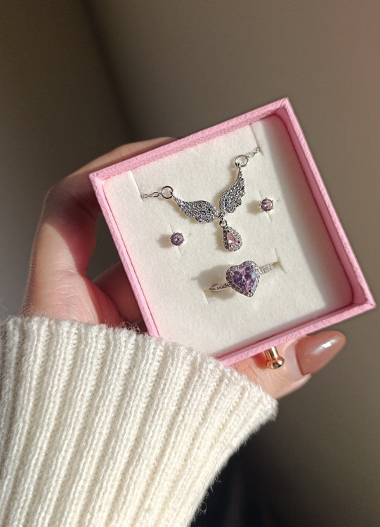 این باکس شامل گردنبند انگشتر و گوشواره نگین صورتی (باکس انتخابی) همگی استیل و رنگ ثابت مناسب استفاده روزمره (داخل حموم استفاده نشه)