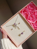 کل پک(انگشتر گردنبند گوشواره و باکس شش گل صورتی)