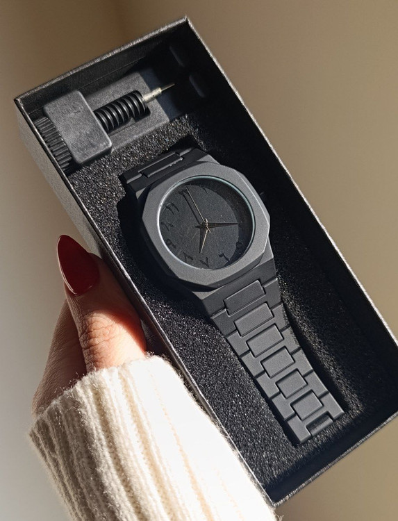 ساعت فول بلک کربنی مردونه اعداد فارسی موتور ژاپن جنس ساعت درجه یک همراه جعبه و بند کوتاه کن ارسال میشه براتون