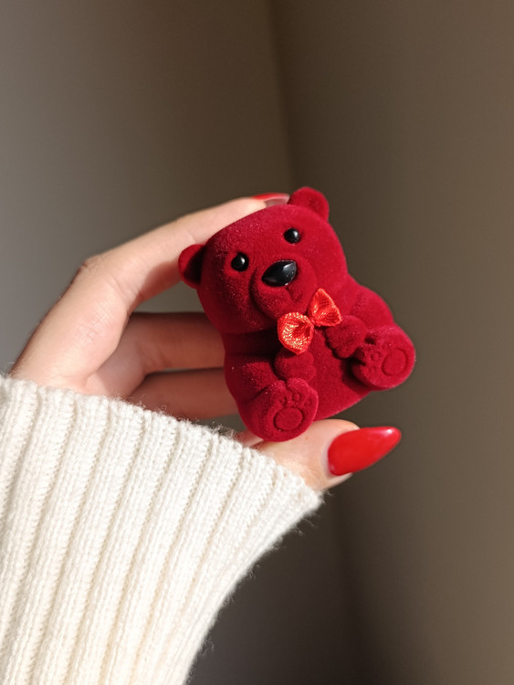 مشخصات:: این ست شامل انگشتر نگین قلبی مشکی داخل جعبه انگشتر خرسی قرمز ،انگشتر فری سایز استیل و رنگ ثابت مناسب استفاده روزمره داخل حموم استفاده نشه ❌ باکس خرسی قرمز جعبه انگشتری