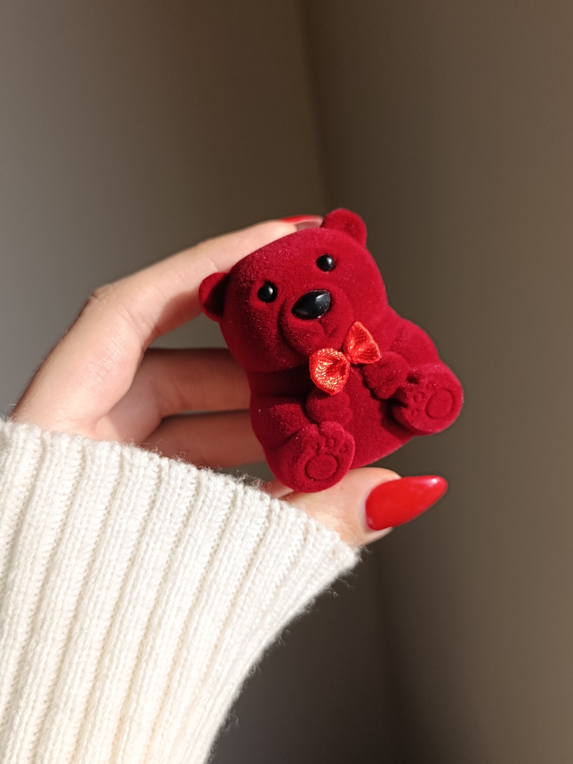 این ست شامل انگشتر نگین قلبی مشکی داخل جعبه انگشتر خرسی قرمز ،انگشتر فری سایز استیل و رنگ ثابت مناسب استفاده روزمره داخل حموم استفاده نشه ❌ باکس خرسی قرمز جعبه انگشتری