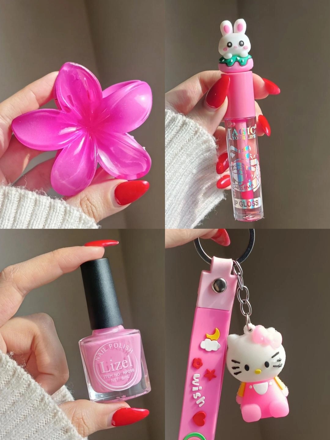 مشخصات:: پک ولنتاینی صورتی شامل:باکس قلبی و پوشال(باکس قلبی هم صورتی هست به علت نور قرمز افتاده تو عکس)کلیپس پلومریا،اسمارتیز شامپاینی،نوتلا🍫باکس تک گل صورتی،نیم ست صورتی،لاک صورتی،لیپ گلاس صورتی،جاکلیدی کیتی،باکس انگشتر خرسی صورتی