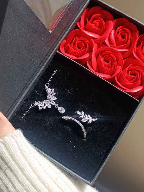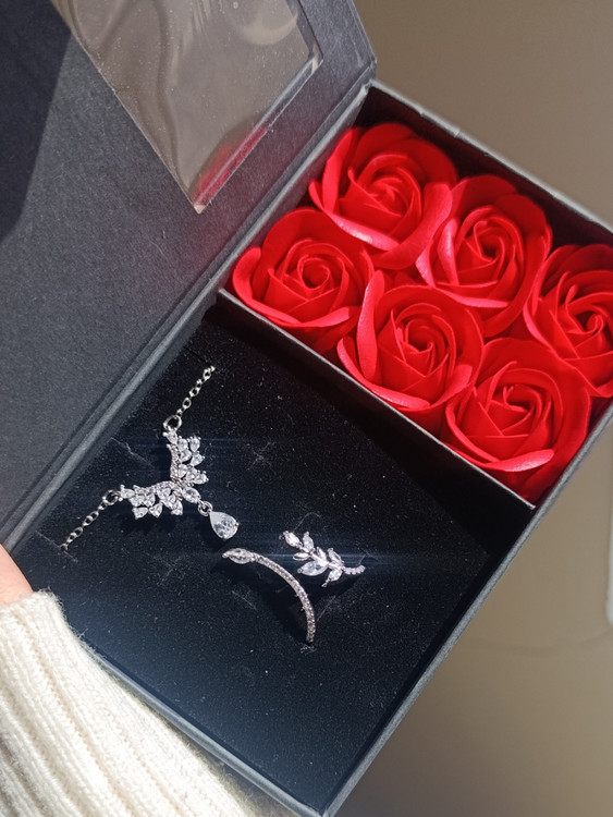این نیمست شامل گردنبند انگشتر فول نگین جواهری سفید انگشتر فری سایز هردو استیل و رنگ ثابت مناسب استفاده روزمره داخل حموم استفاده نشه ❌ نگین ها بدون ریزش