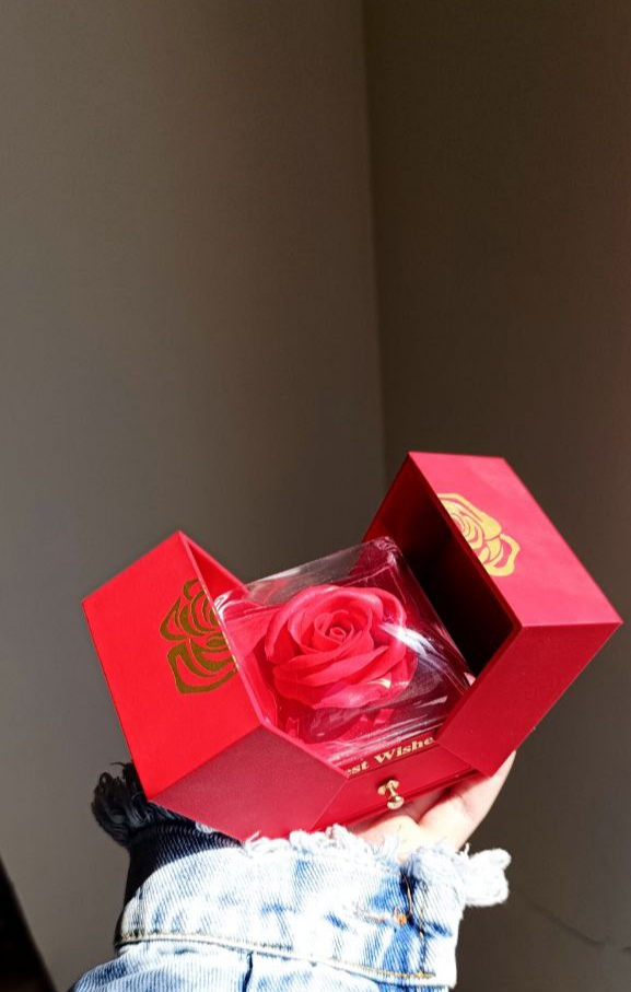 باکس گل داخلش نیم ست،انگشتر،گردنبند،گوشواره میتونید باهم یا جدا گونه هم بزارید🩷،پیج ما در اینستاگرام Donyaaccessory
