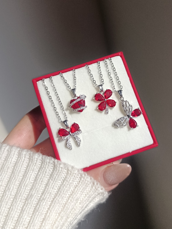 مشخصات:: گردنبند های جواهری نگین قرمز دخترونه، استیل و رنگ ثابت مناسب استفاده روزمره داخل حموم استفاده نشه ❌ نگین ها بدون ریزش