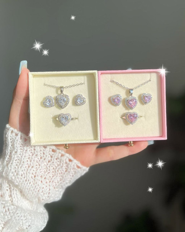نیم ست قلب گوشوارهها میخی هستن،انگشتر فری سایزه از پشت میتونید برای انگشتتون تنظیم کنید،رنگ ثابته(برای اینکه کیفیت کار افت نکنه بهتره داخل حمام و زیر آب استفاده نشه)،پیج ما در اینستاگرام Donyaaccessory