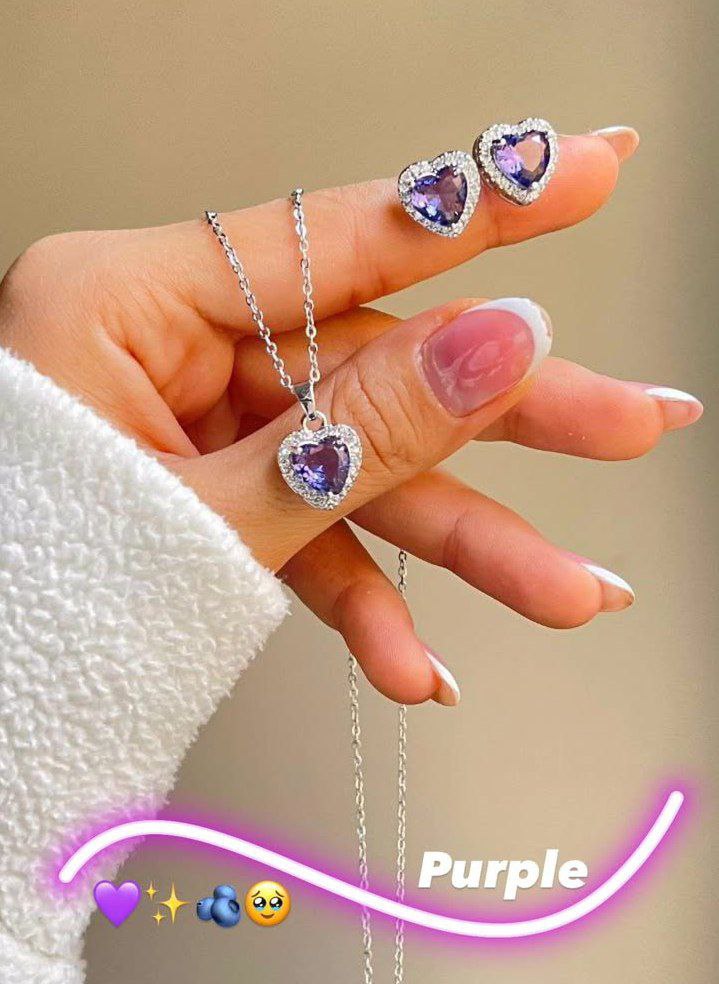 نیم ست قلب جواهری بنفش