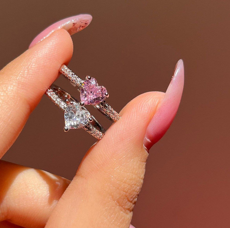 انگشتر قلب جواهری نگین سفید و صورتی
