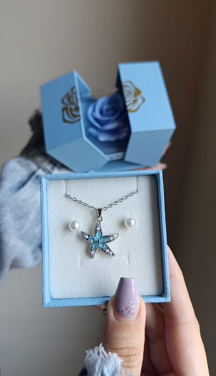 مشخصات:: این ست شامل گردنبند و باکس آبی روکش دار همراه بگ دستی (گوشواره اتمام)،پیج ما در اینستاگرام Donyaaccessory