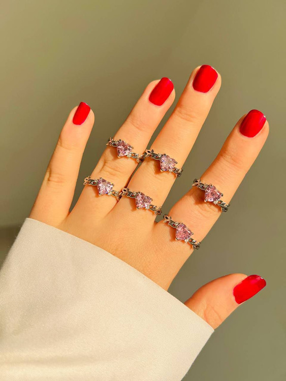 انگشتر با قلب صورتی فری سایز هستش از پشت میتونید برای انگشتتون تنظیم کنید،رنگ ثابت(برای اینکه کیفیت رنگ کار افت نکنه بهتره داخل حمام و زیر آب استفاده نشه)،پیج ما در اینستاگرام Donyaaccessory