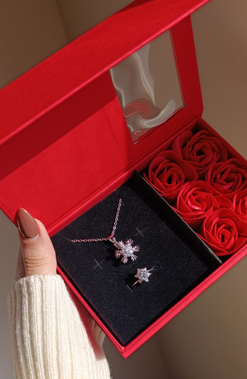 مشخصات:: گردنبند و انگشتر طرح برف رنگ ثابتن(برای اینکه کیفیت رنگشون افت نکنه بهتره داخل حمام و زیر آب استفاده نشه)،گردنبند برف اسپینری یعنی متحرکه و میچرخه،و دو گزینه با باکس و بدون باکس وجود دارن دقت کنید که کدوم رو انتخاب میکنید🩷