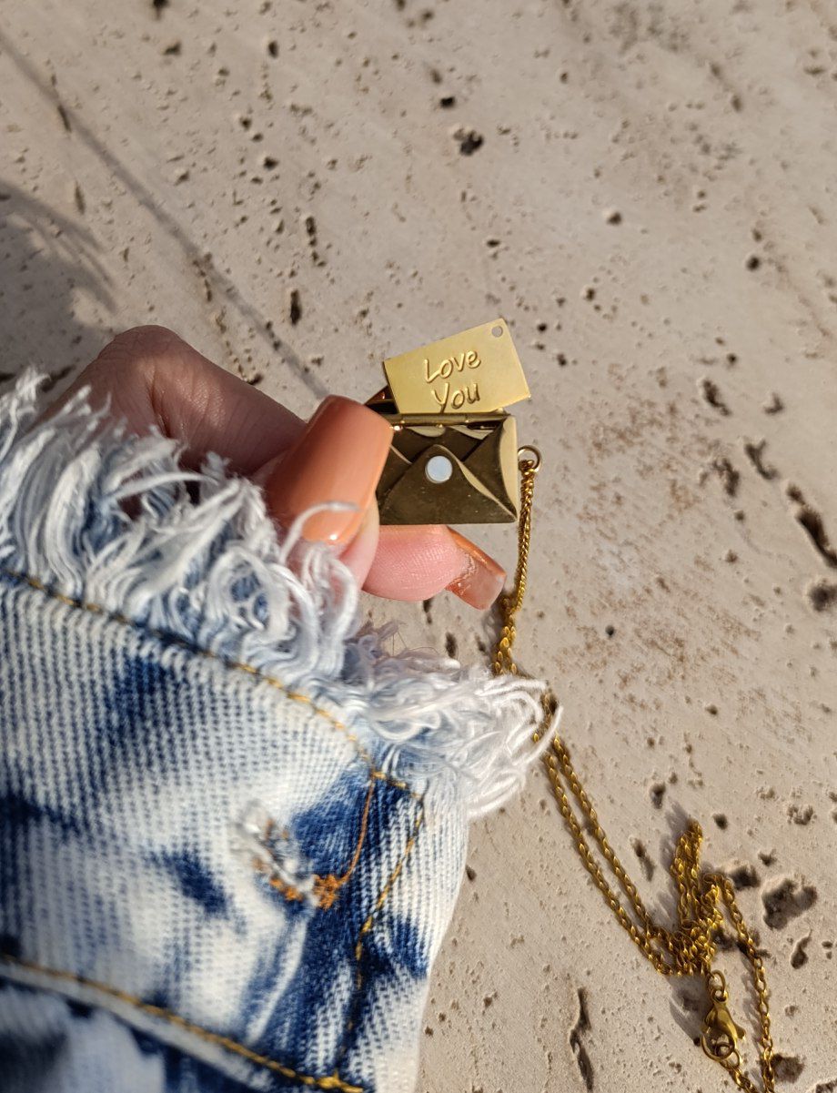 مشخصات: : استیل و رنگ ثابت،رنگ طلایی، این گردنبند یه پاکت نامه هست داخلش نوشتهLove you بهترین کادو برای ست های کاپلی،پیج ما در اینستاگرام Donyaaccessory
