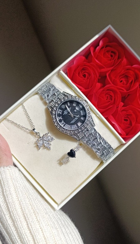 / پک کامل (شامل ساعت،انگشتر،گردنبند و باکس شش گل قرمز) / فقط ساعت گردنبند انگشتر بدون باکس❌