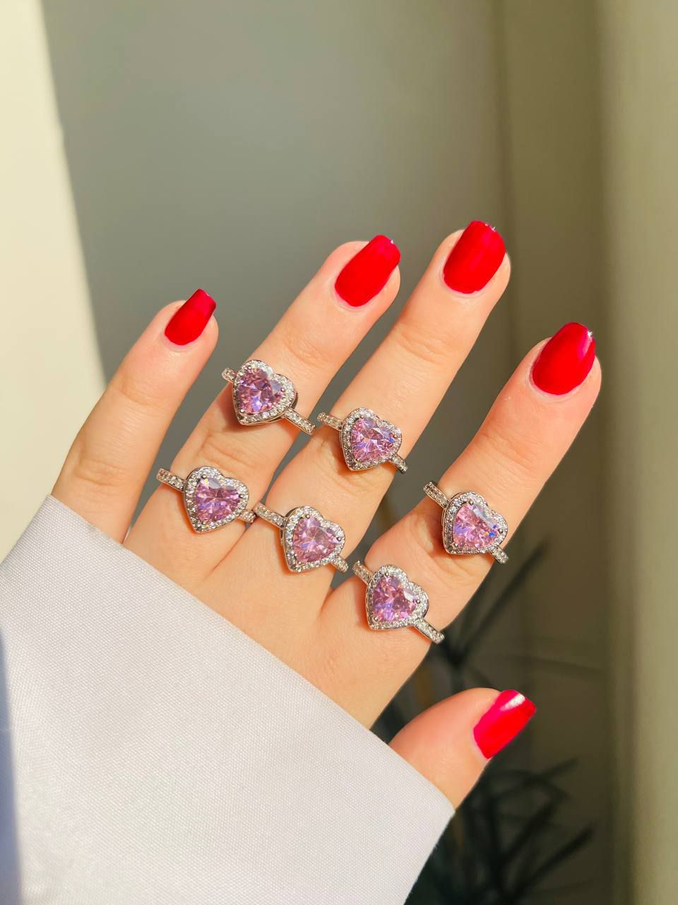 حلقه تعهد فول نگین قلبی استیل و رنگ ثابت (داخل حموم استفاده نشه) نگین ها مخراجکاری شده و بدون ریزش✅ مناسب هدیه برای حلقه تعهد