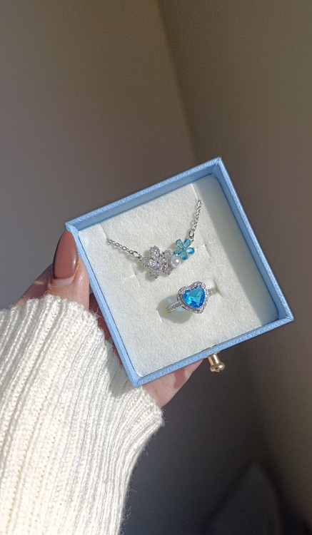 این پک شامل انگشتر گردنبند و(باکس که انتخابی هست میتونید انتخاب کنید داخل باکس آبی باشه یا خیر)❌ گردنبند و انگشتر استیل و رنگ ثابت مناسب استفاده روزمره (داخل حموم استفاده نشه)باکس روکش دار آبی همراه بگ دستی