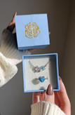 / انگشتر و گردنبند بدون باکس ❌ / کل پک شامل گردنبند انگشتر و باکس گل جاودان آبی
