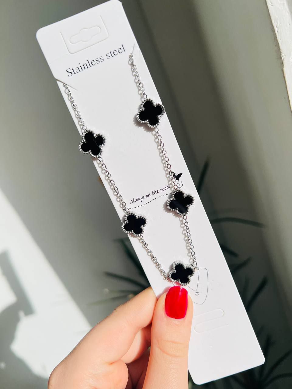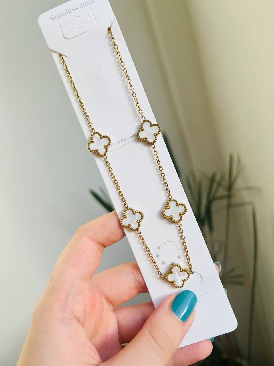 مشخصات:گردنبند ونکلیف پنج گل استیل و رنگ ثابت مناسب استفاده روزمره ✅طول زنجیر ۴۰cm پنج سانتیمتر هم زنجیر اضافه