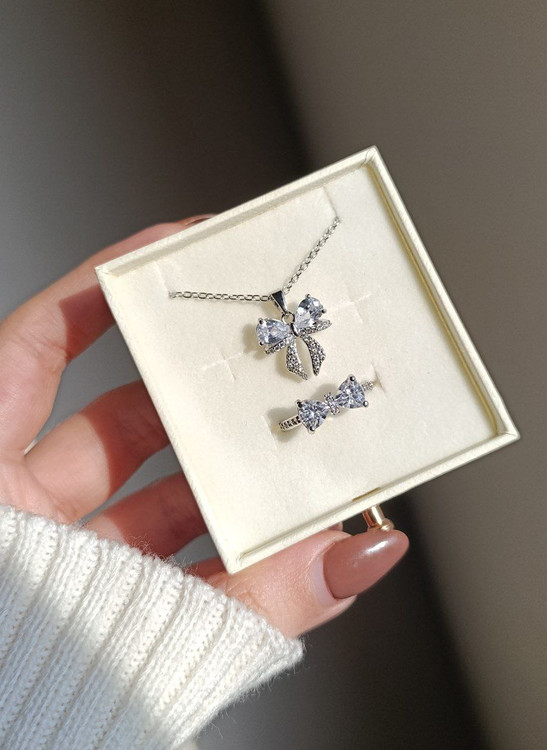این نیم ست پاپیون خوشگل استیل(برای اینکه کیفیت رنگشون افت نکنه بهتره داخل حمام و زیر آب استفاده نشه) که انگشترش هم فری سایزه رو هم میتونید با باکس خرید کنید هم بدون باکس در انتخاب گزینهها دقت کنید🩷